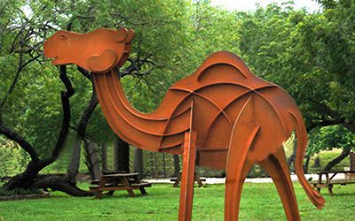 剪影雕塑,看的就是個(gè)輪廓!把你想做的東西(人、動(dòng)物、樹啊啥的),簡化成影子形狀。材料選擇多:不銹鋼、耐候鋼(喜歡生銹那種質(zhì)感)、玻璃鋼、鍍鋅板、鐵板都成。最后還得靠噴漆,給它們打扮上顏色。