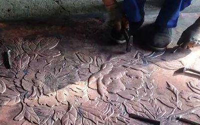 鍛造(咱們這兒特指鍛銅)——嘿!這可是體力活加技術(shù)活!拿銅板當(dāng)畫布,錘子當(dāng)畫筆,全靠師傅一錘子一錘子敲打出來的!尤其是浮雕、壁畫這類講究深淺效果的,這手藝絕了!純手工的精細(xì)活兒。
